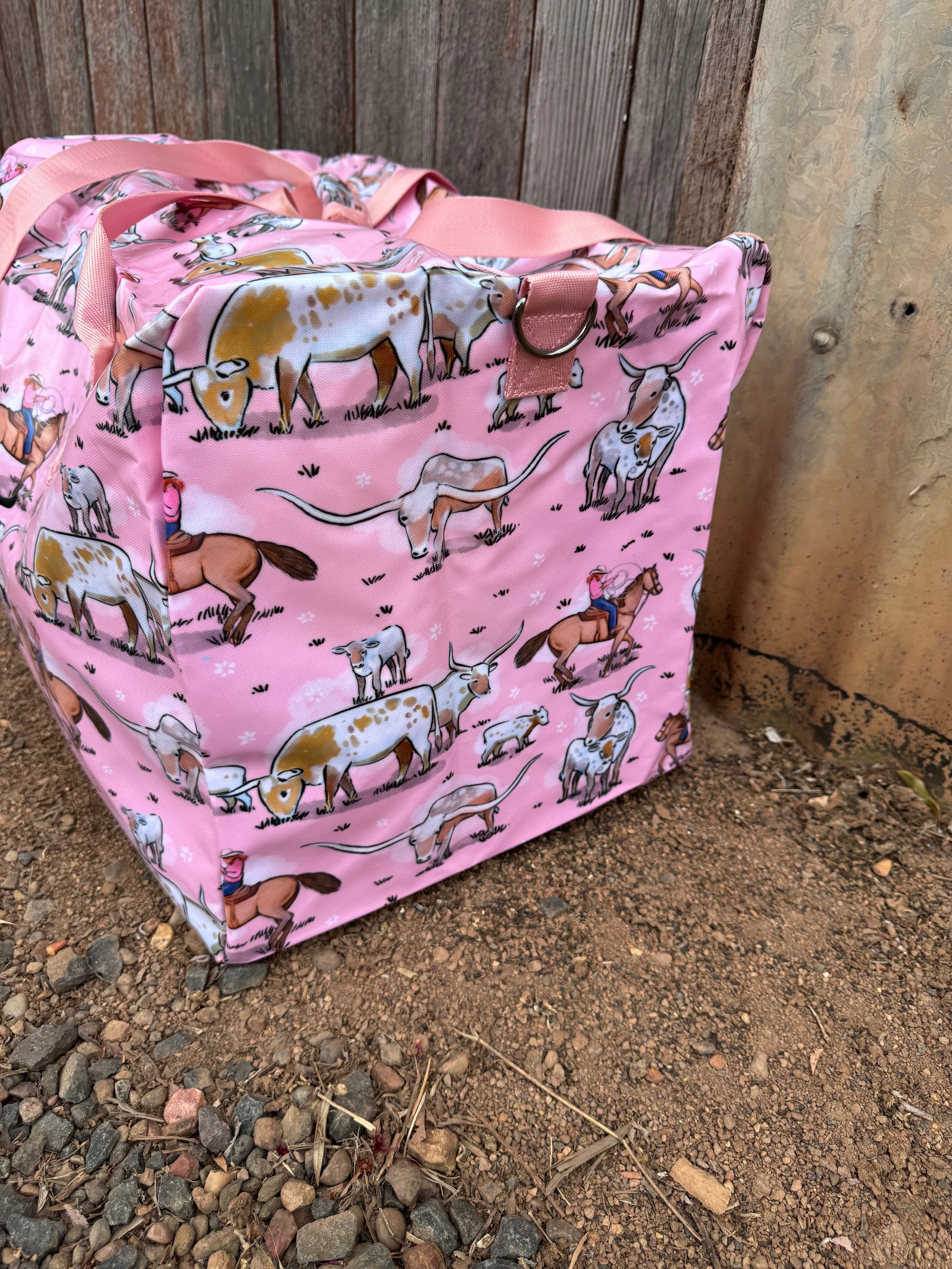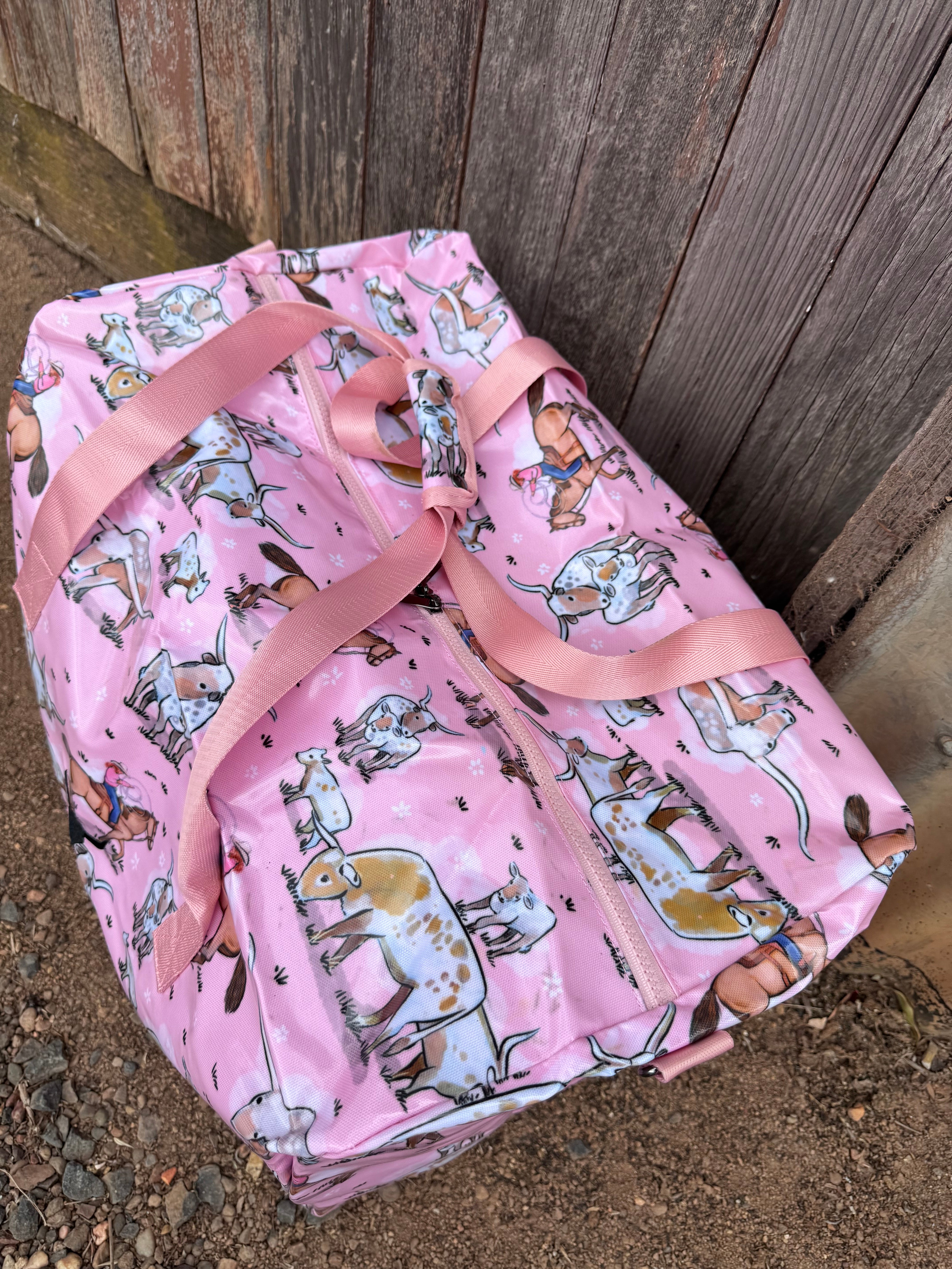 Made of tough thick graphically designed printed cotton and covered in a PVC for protection and durability. Pattern with country themed fabric that kids will go wild for. No one sharing bags, getting confused who's bag is who's or even over packing. These bags are designed to last years, be practical and used endlessly.